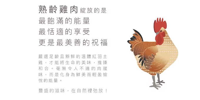 此外,產品選用台灣福基出品,與行政院農委會畜產試驗所共同選育的紅羽土雞,堅持選用熟齡的溫體雞製成,從飼養到製作層層把關,提供顧客100%用心製作的滴雞精。