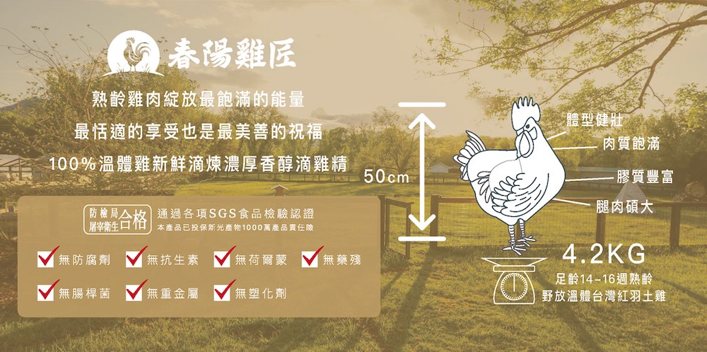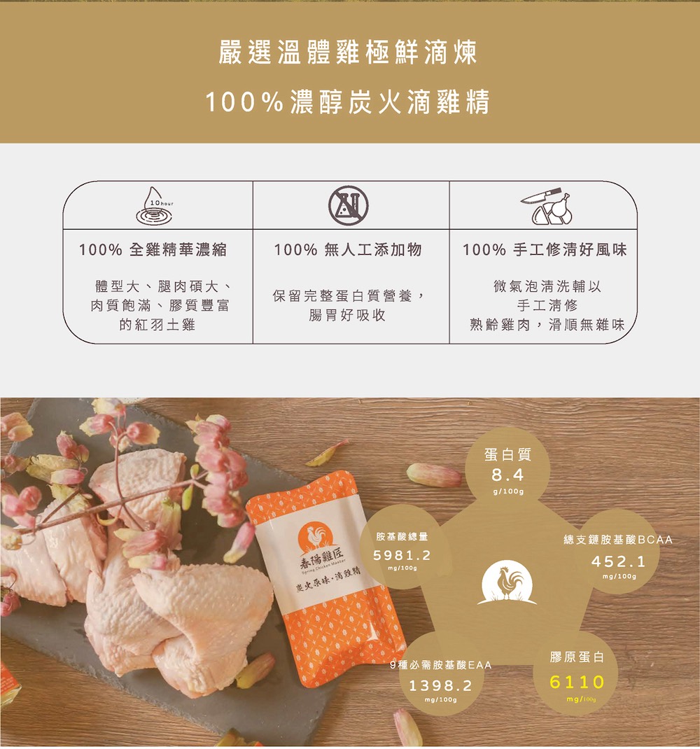 ◾️ 100%全雞滴煉,選用14~16週熟齡台灣紅羽土雞